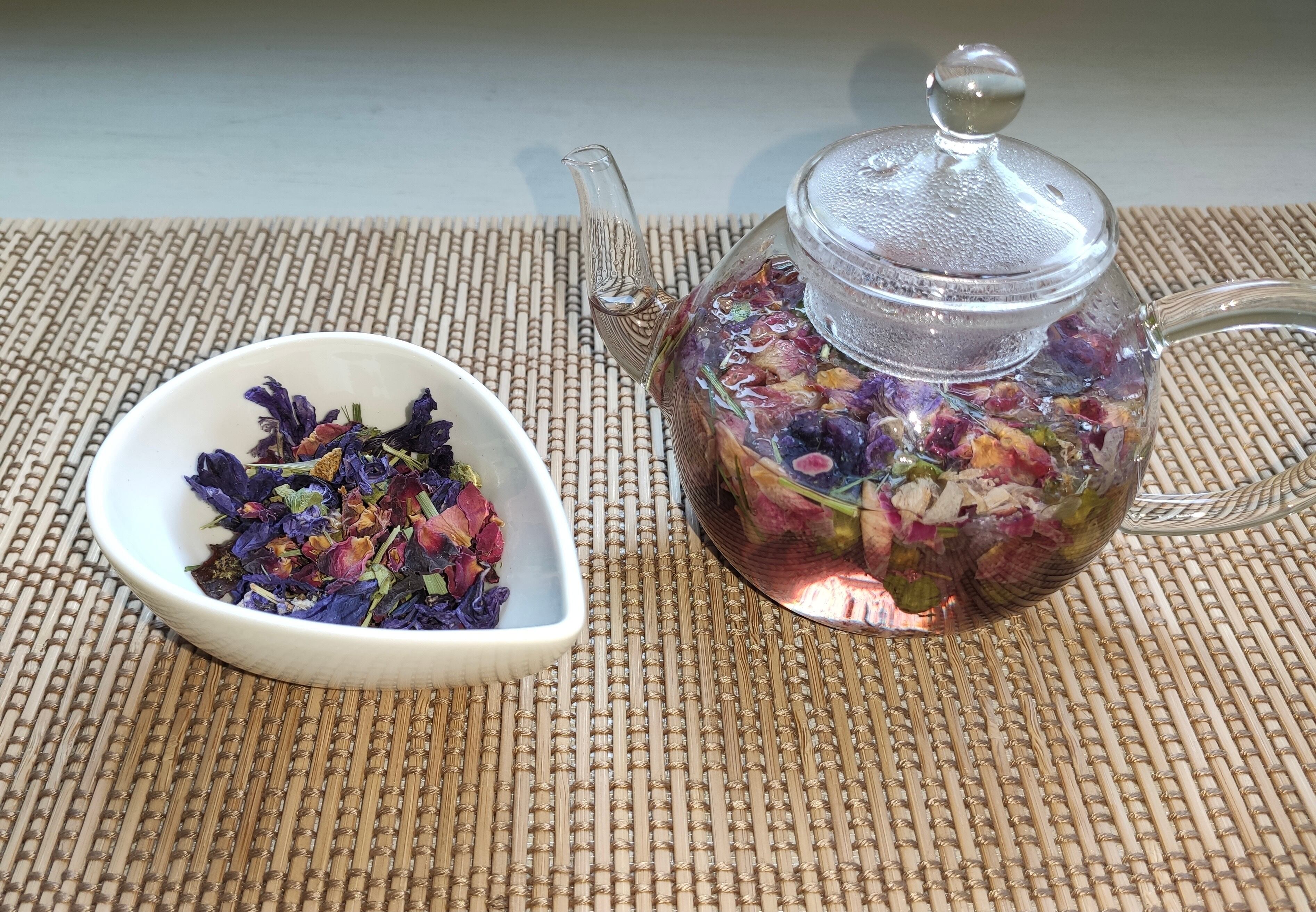 穏やかな青色とバラの芳香にゆっくりと心が静まるブレンド。