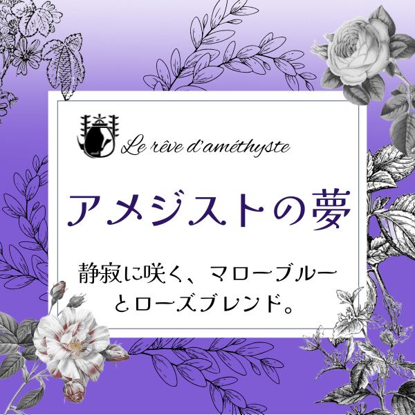 穏やかな青色とバラの芳香にゆっくりと心が静まるブレンド。